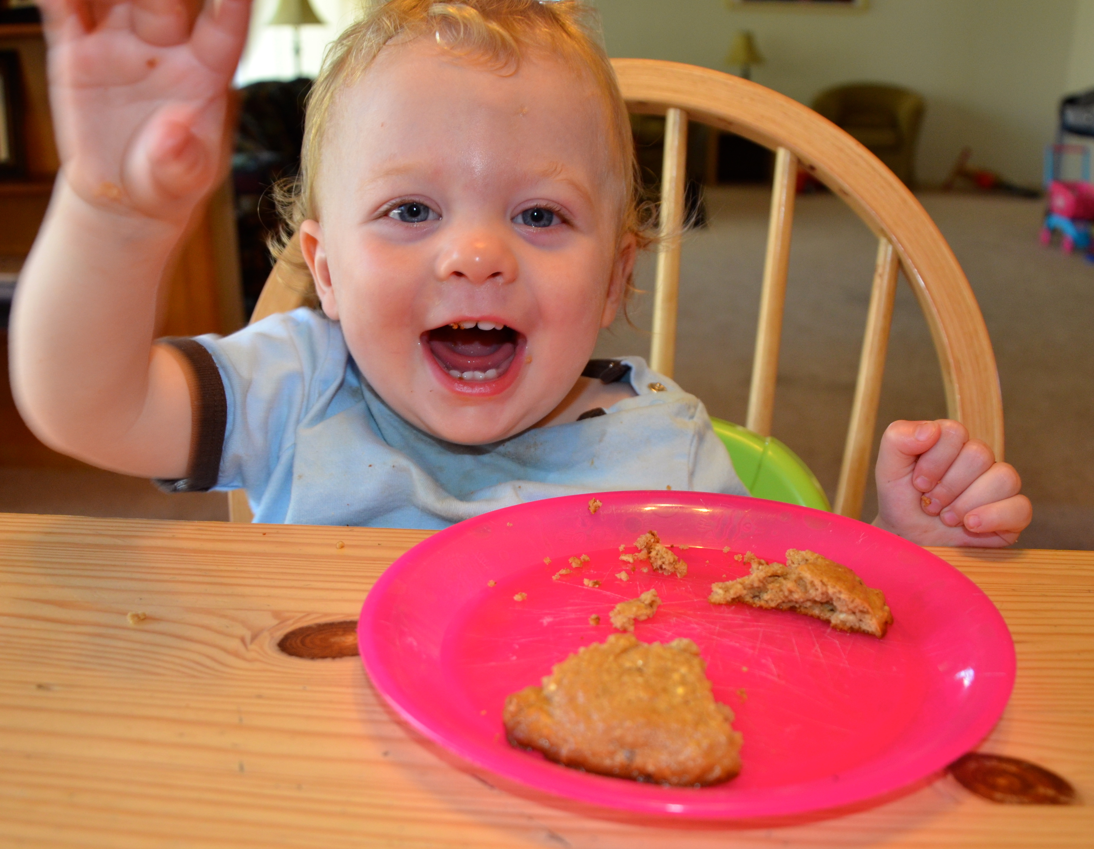 Let’s not forget the most important tidbit: this recipe is easy to make and incurs next to zero clean-up. Unless, of course, your one-year-old son gets a hold of the cooling cookies! Let’s say he makes thumb-prints in several cookies and then steals a few to eat around the house. No worries; we all know what neat eaters toddlers are.