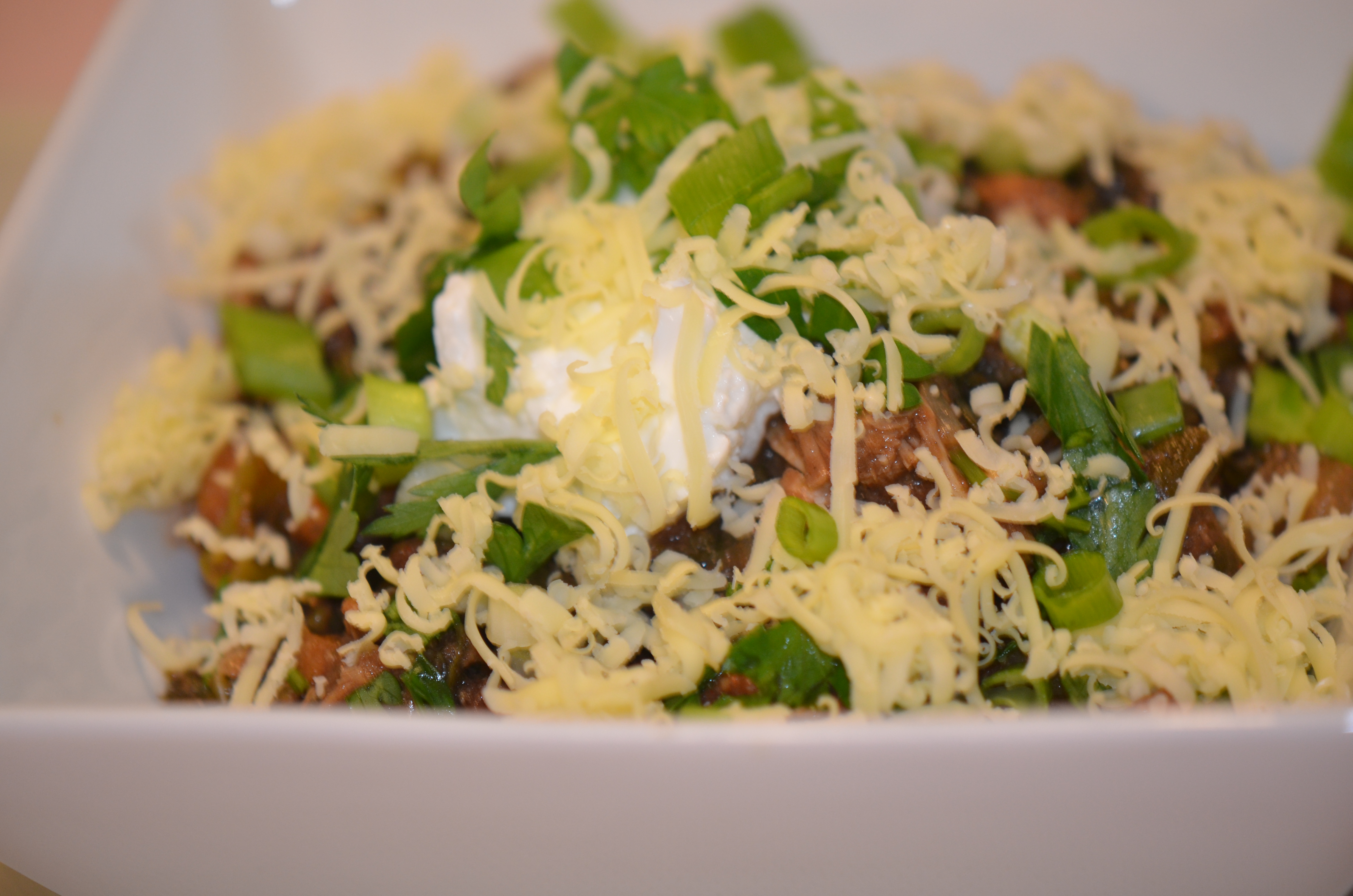 Above, the ingredients are combined in the slow-cooker and are primed to slowly simmer on their own. This meal has it’s big boy pants on – it simply takes care of itself. If only I could say as much about my lively 18-month old!