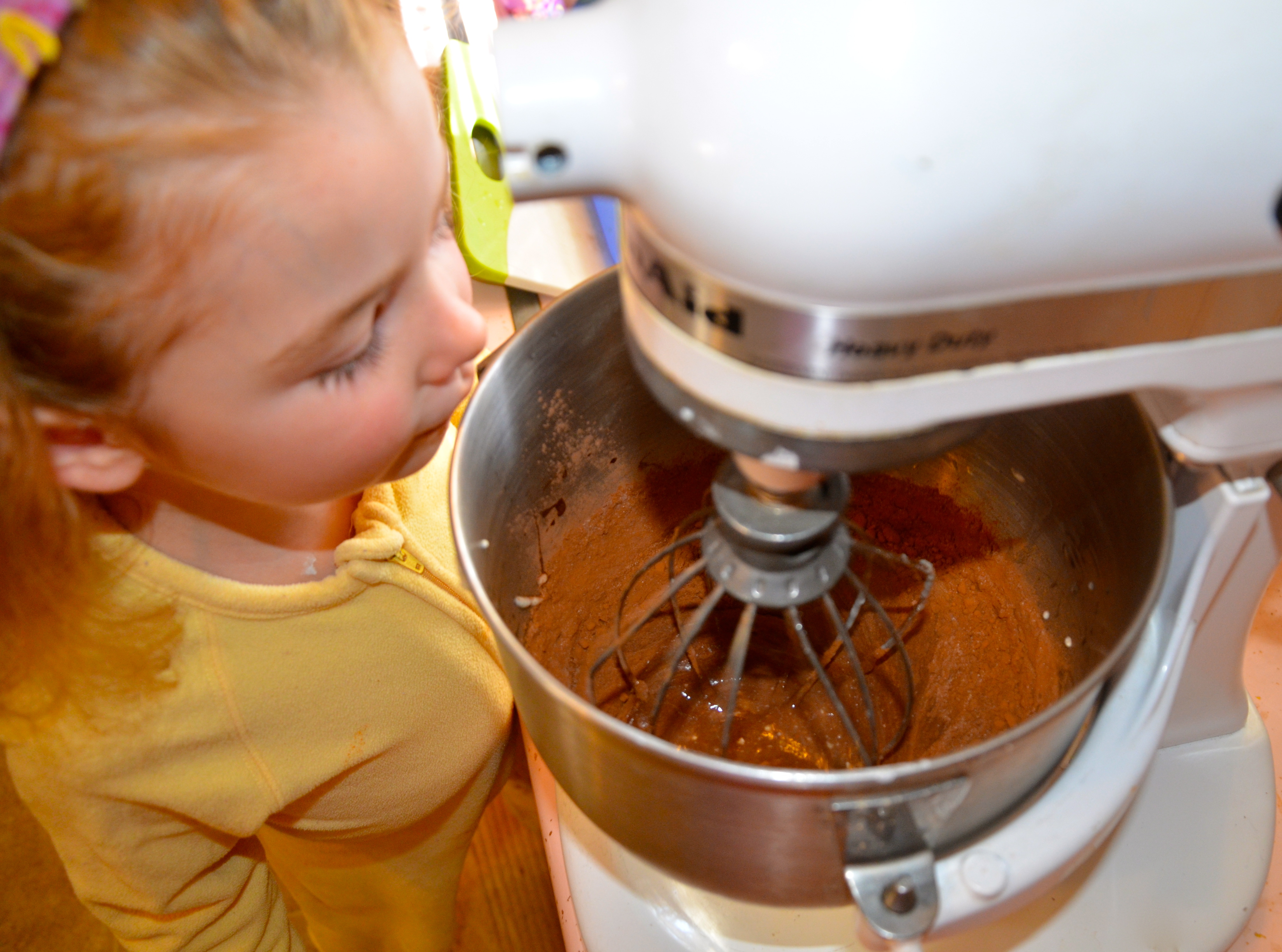 All done! Upon tasting the batter, Snoo Maggo pipes up “More chocolate so it tastes really, really good.”