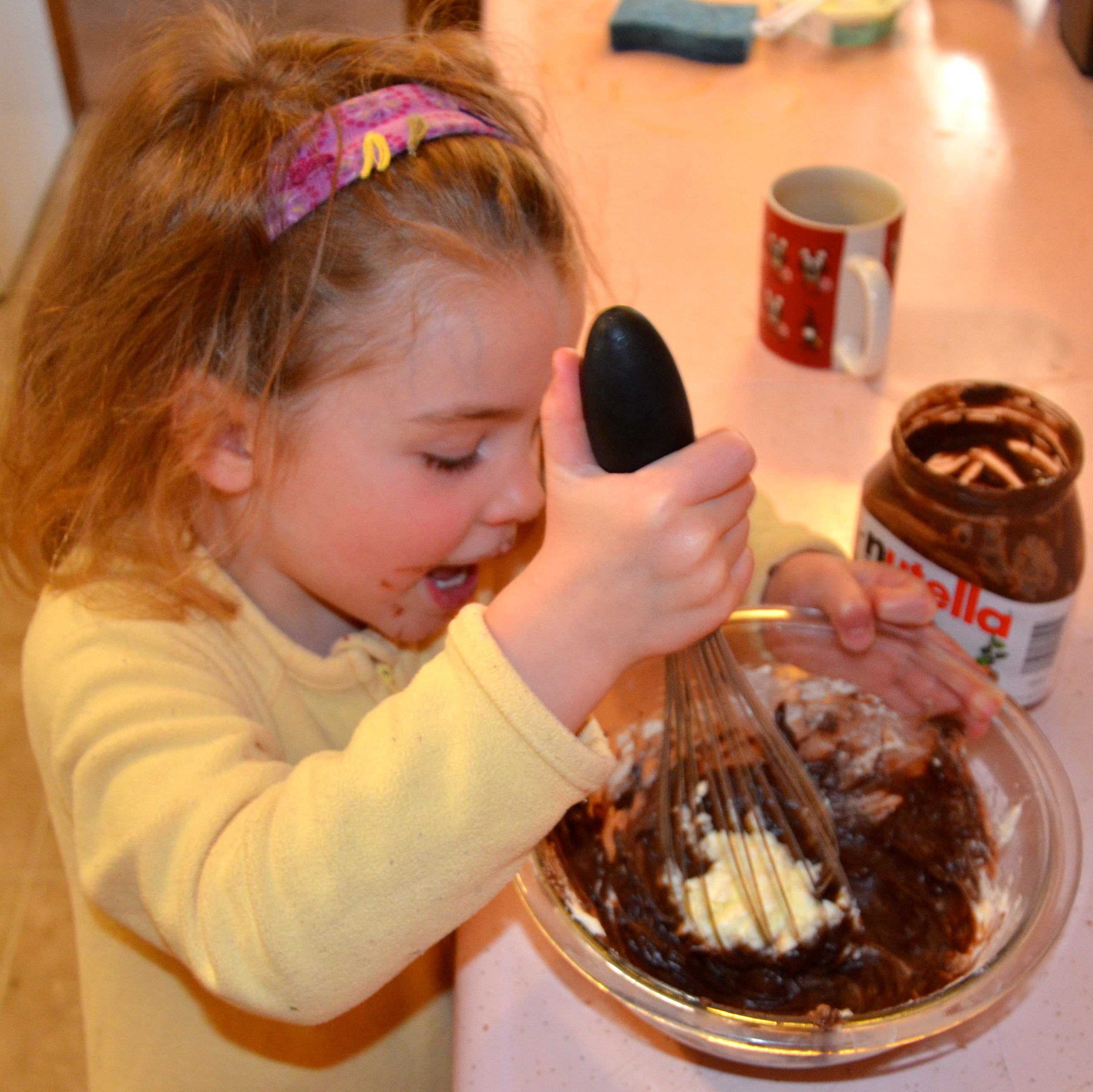 Snoo Magoo whisks the vanilla, coffee, Nutella and Mascarpone cheese. She samples the icing and proclaims “It needs Manchego cheese. I love Manchego cheese.” A cheese head and lover of all things fromage like her mother, for sure.