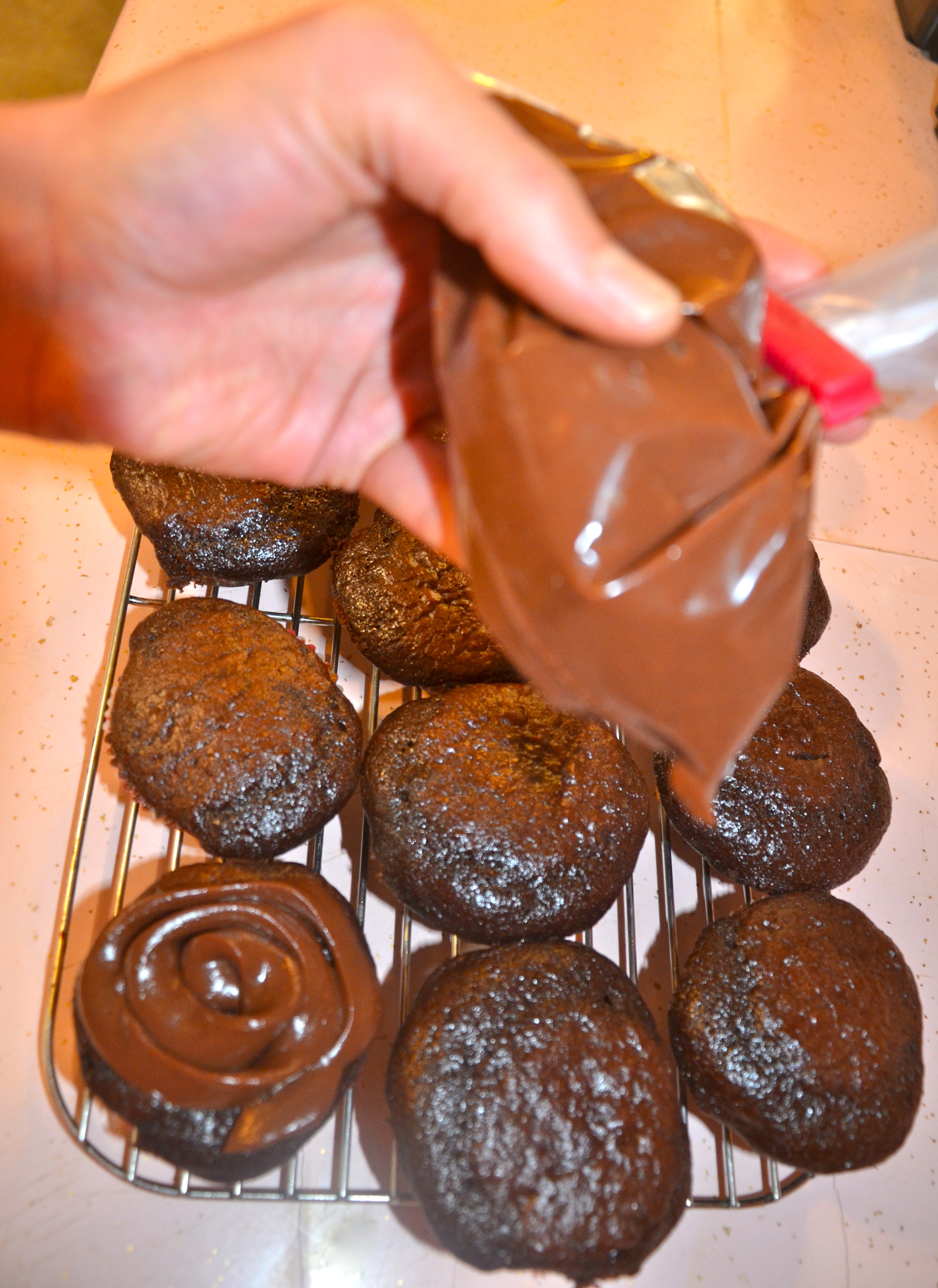 Hot Cocoa Caramel Cupcakes with  Chocolate Hazelnut Icing