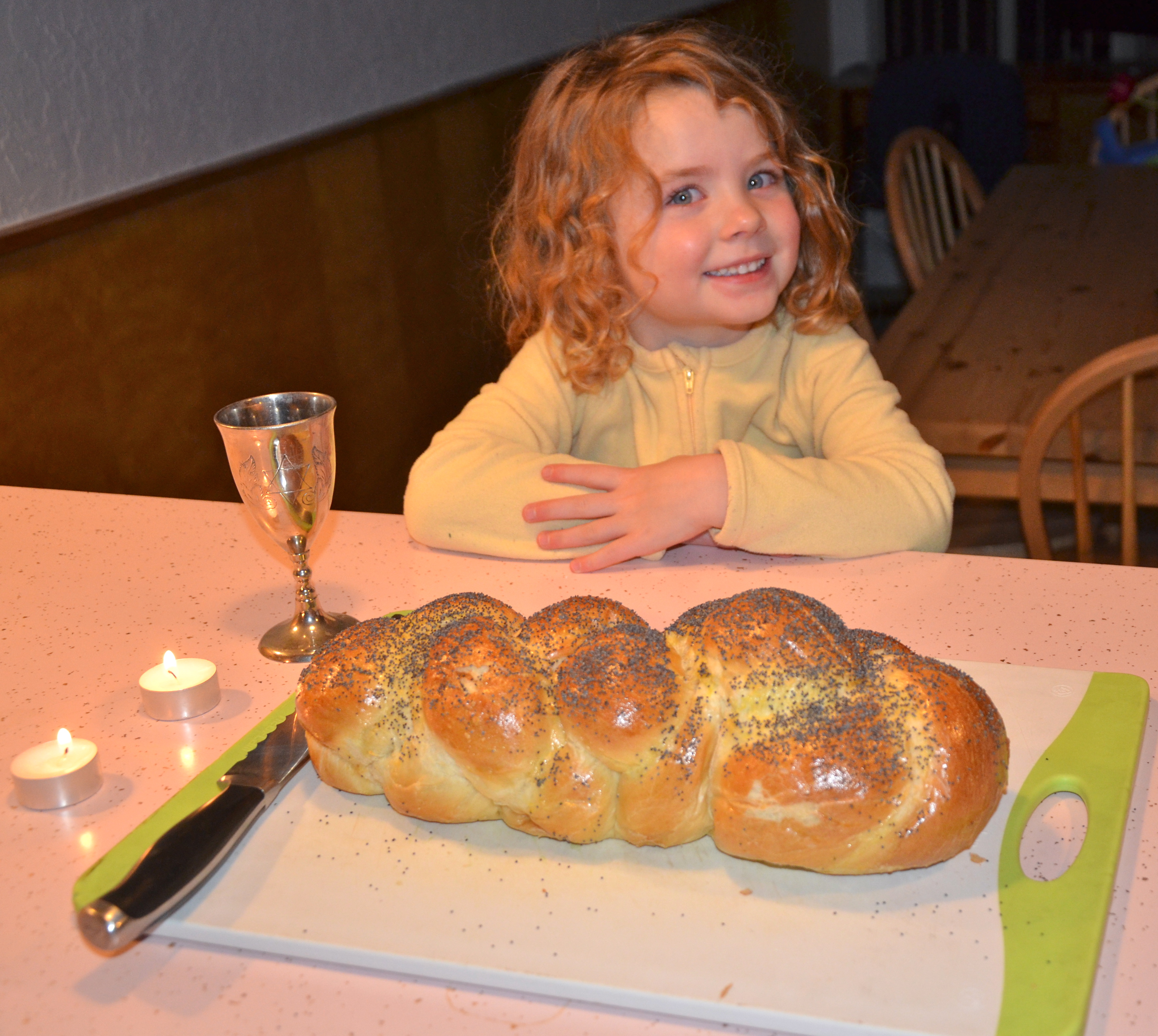 It’s Friday. The hubby, Abba Goose is off from work this weekend – no hospital, just home. A rare treat. So, we will have a Friday night (Shabbat) dinner together. Our daughter, Snu Magoo, will wait up until Abba Goose gets home. It will be sometime after eight; it’s an early night for him. She wants a hug from her Goose, and what she also craves is a slice – or five – of her Ima’s poppyseed challah. “With a lot of butter… More butter, please!” says the Snoo Magoo.