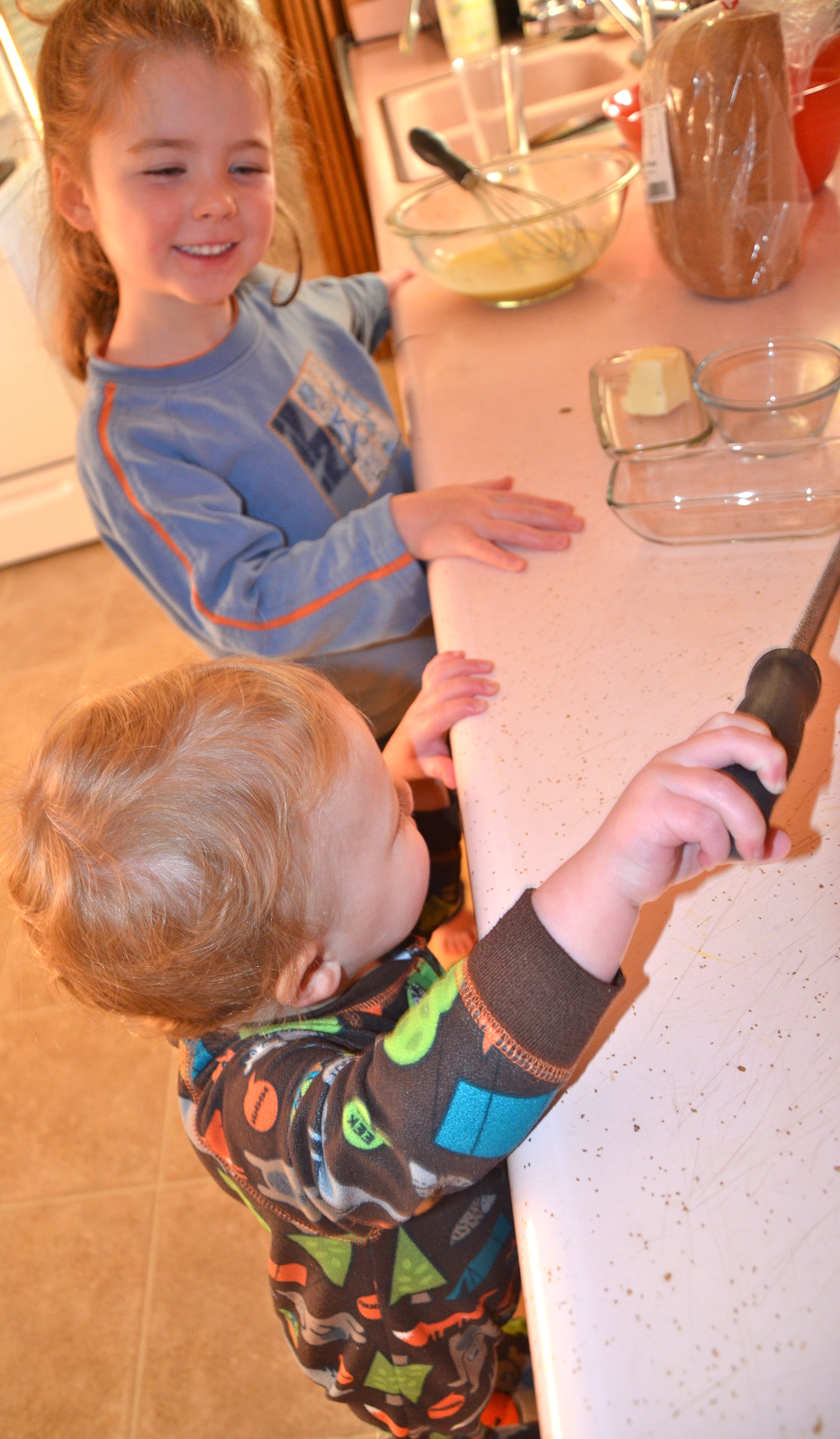 The munchkins gobble down the rustic, glacé breakfast.