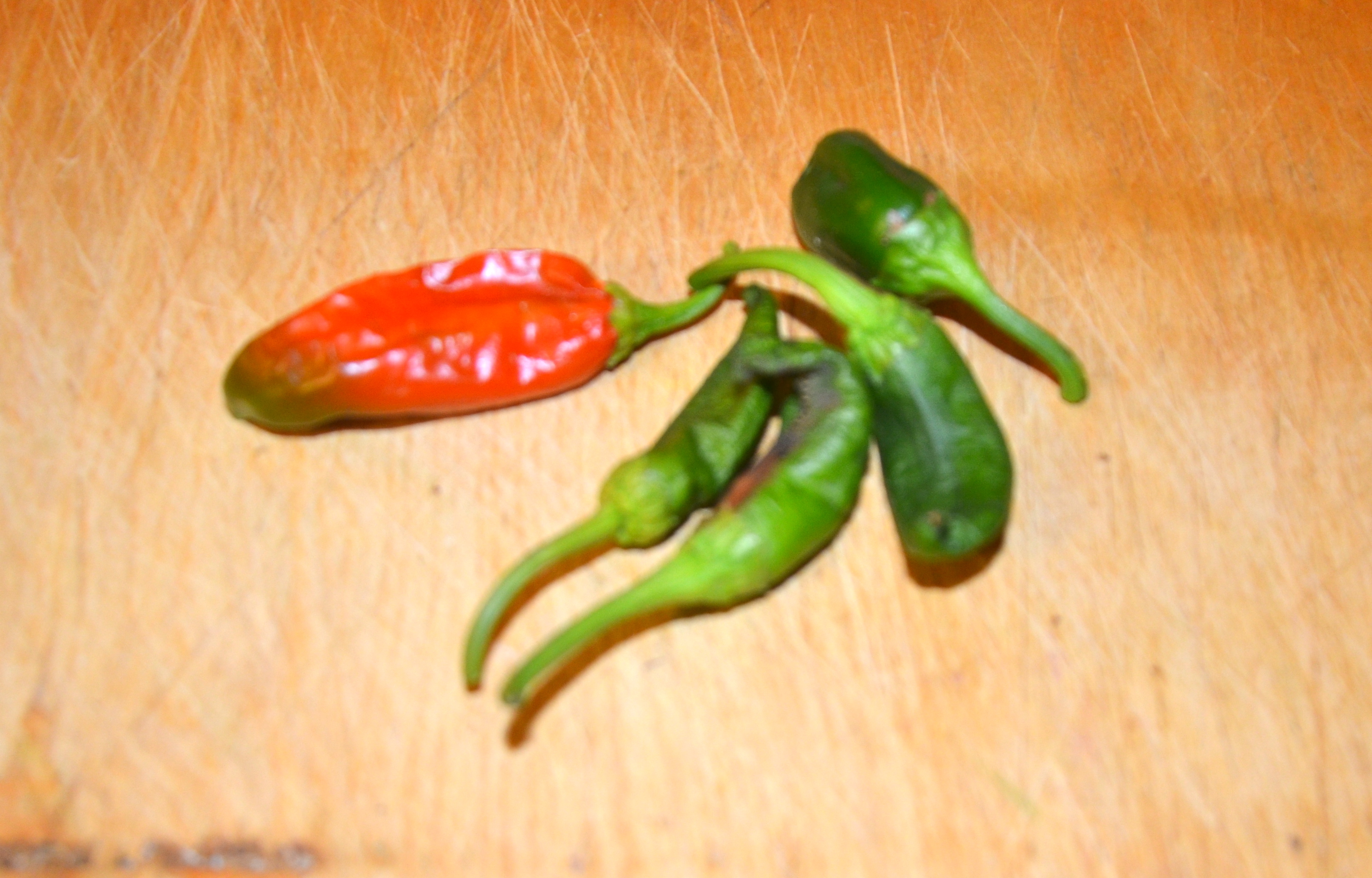 Just as the final ingredients of chili come together, Abba comes in from the garden with the last chile peppers of the season.