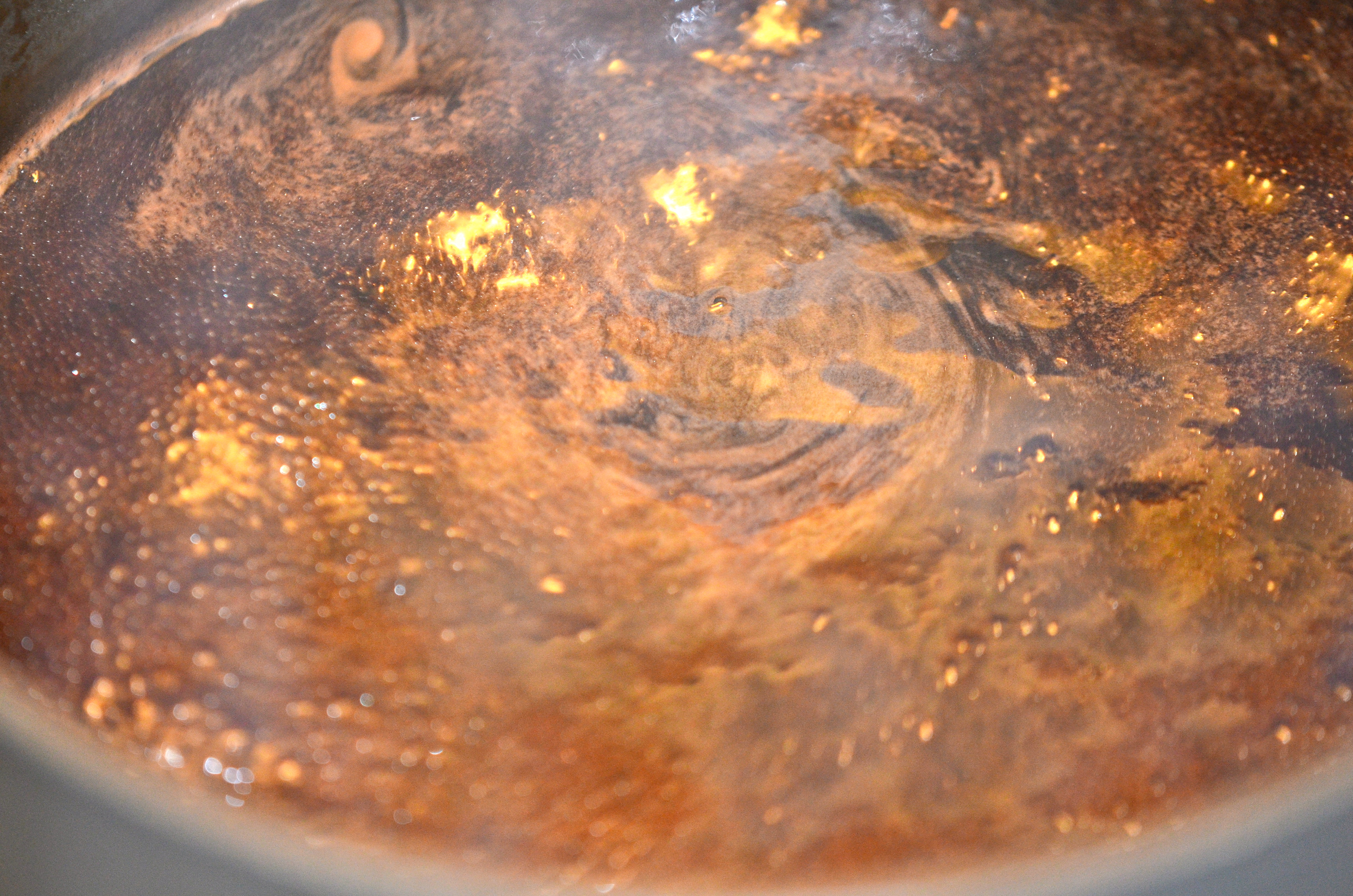 - Simmer until the vinegar is reduced by half. It will adhere to the back of a spoon when tested.