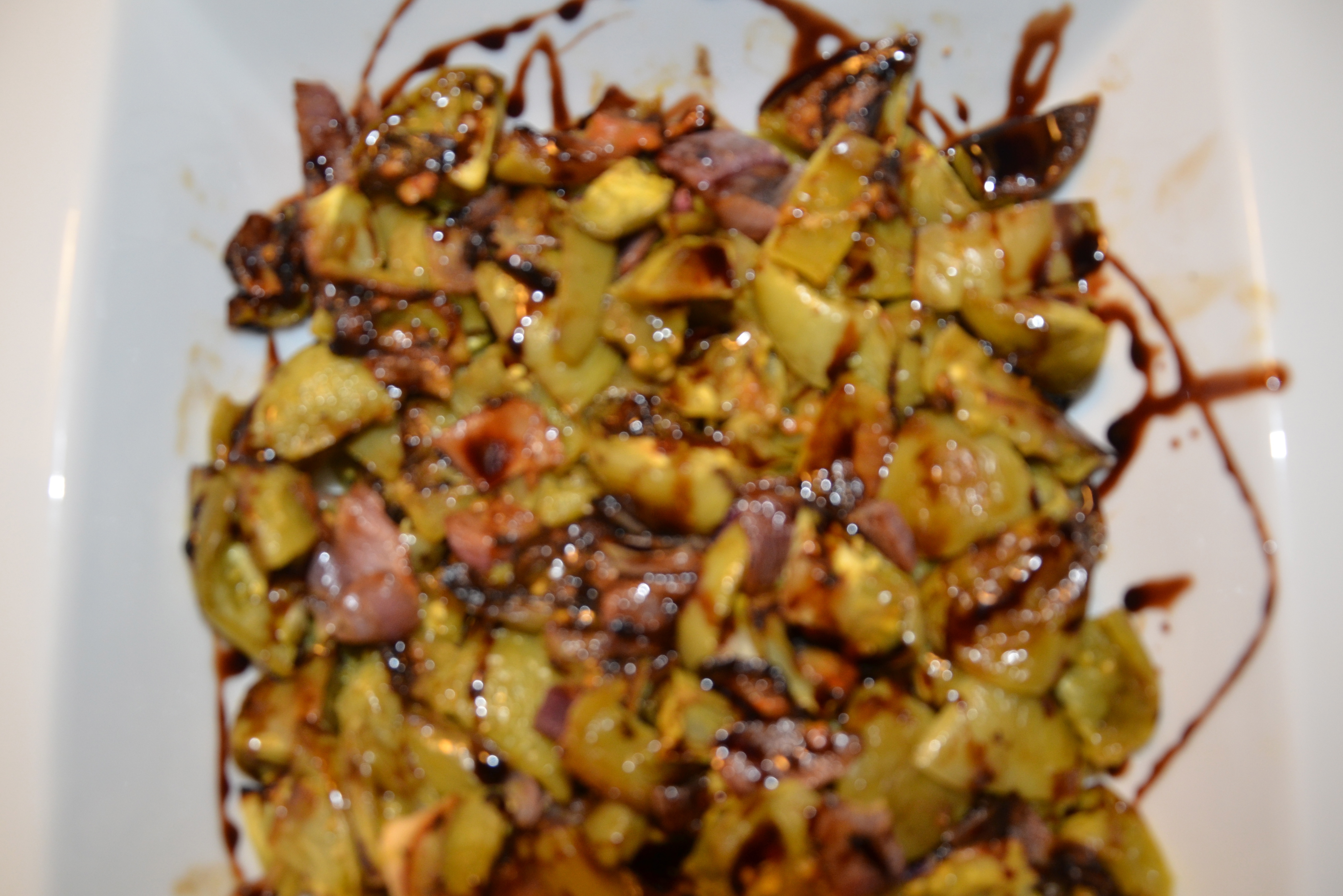 - Drizzle the vegetables with a two to four tablespoons of the balsmic reduction. Reserve the remaining for later use.