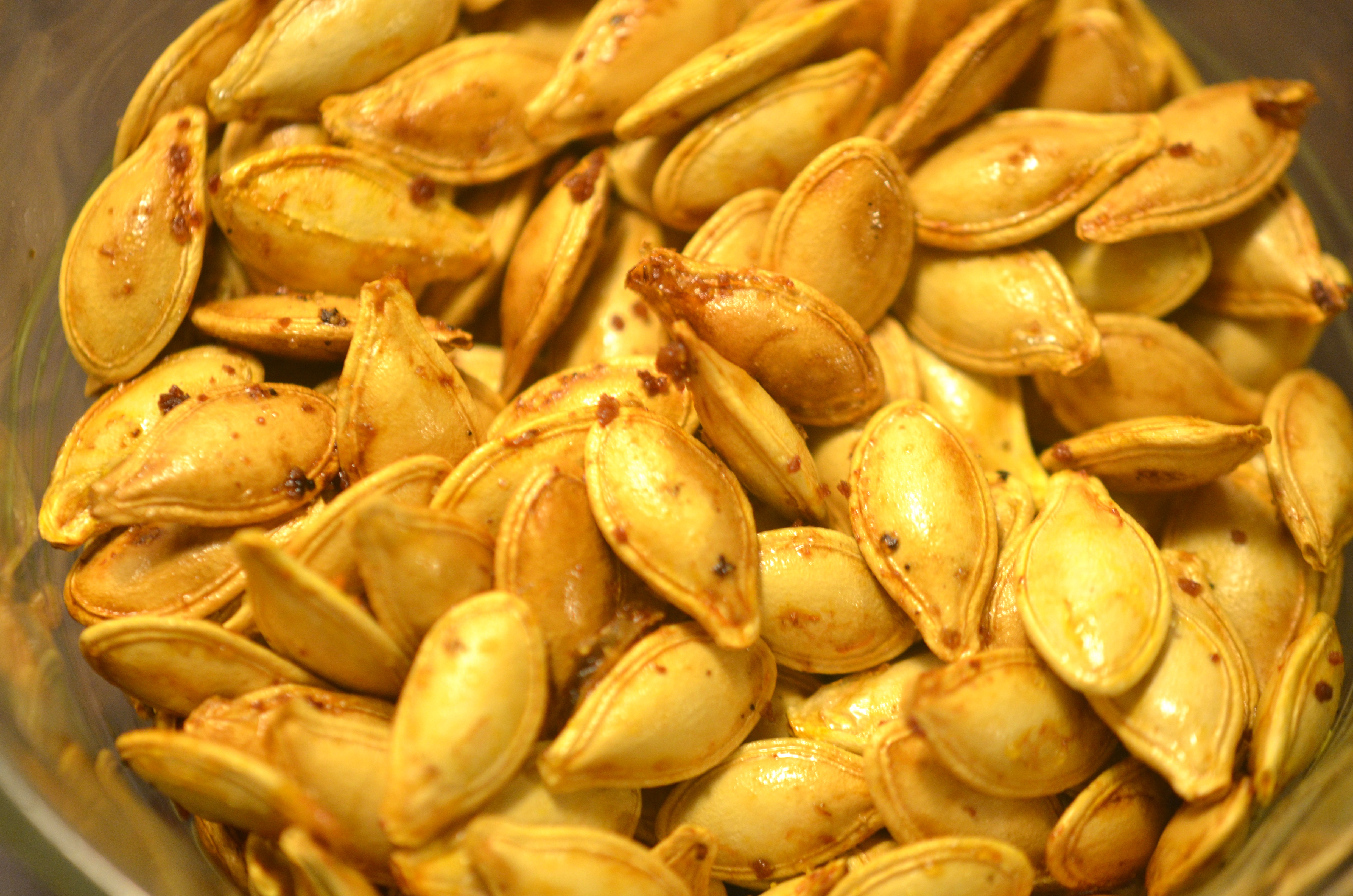 • Roasted pumpkin seeds, reserved from the pumpkin pie pumpkin
