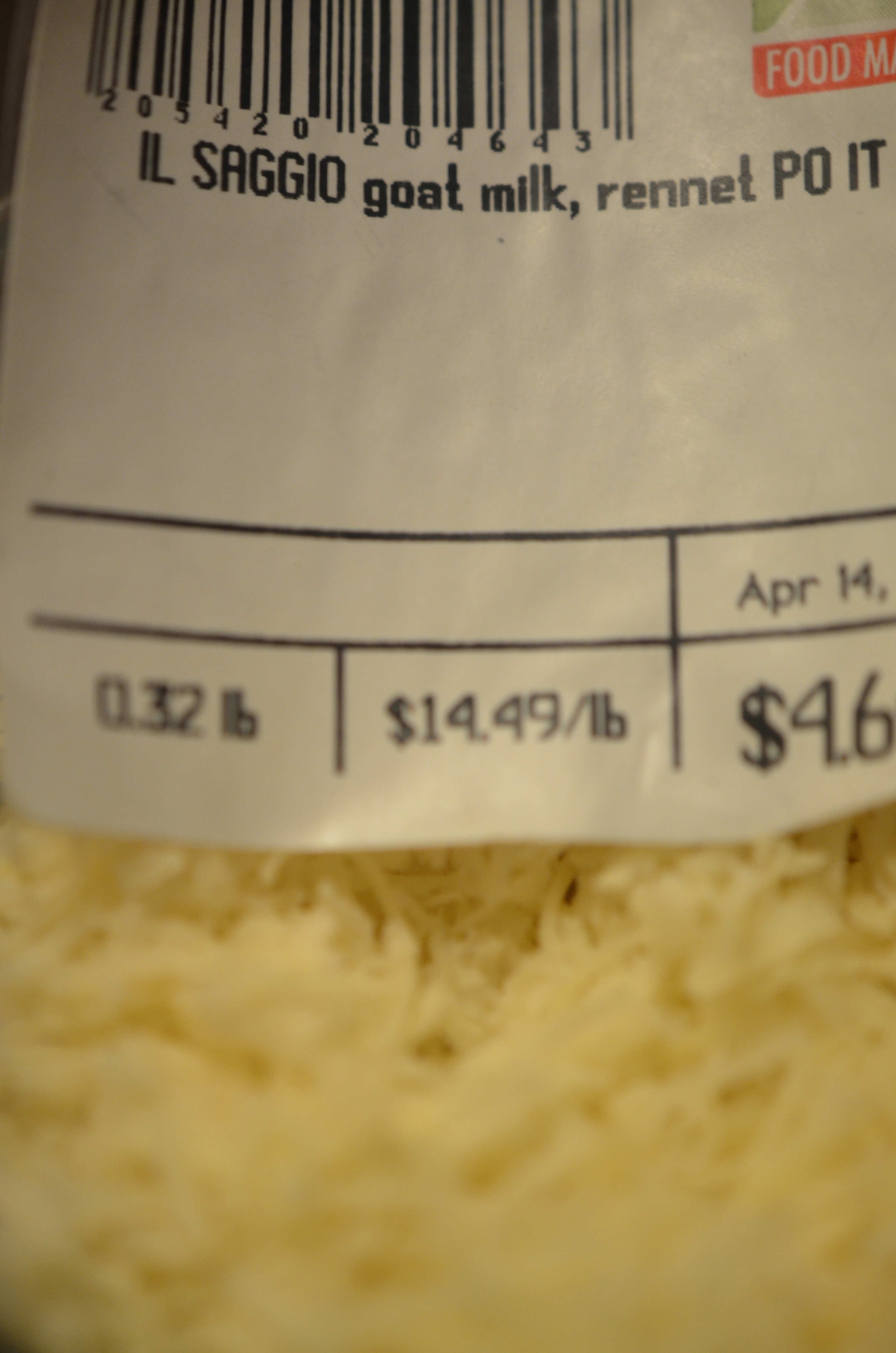 Grate the sharpest, strongest, hardest Italian cheese that you have on hand. I chose a robust, pungent and mature Italian goat variety.