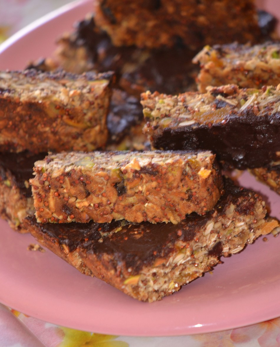 “Seedy” Apricot, Cherry and Pistachio Quinoa Bars (GF)