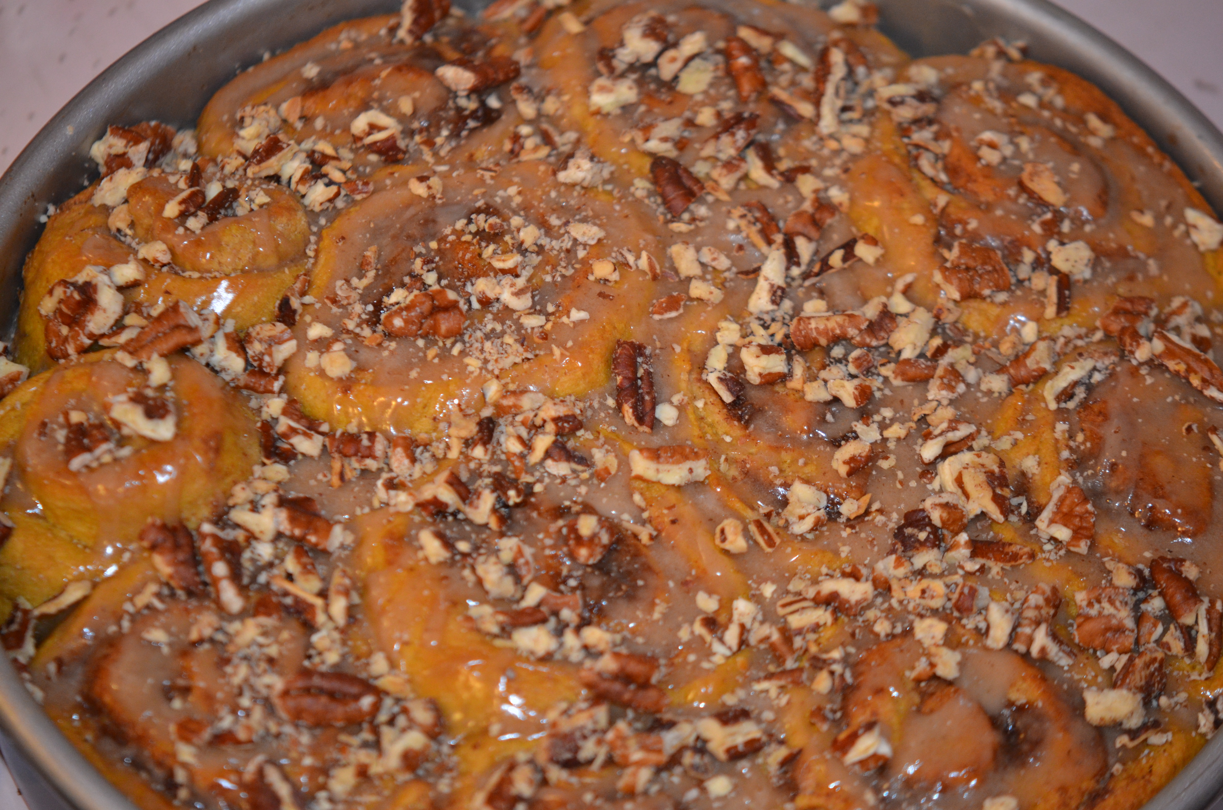 • Drizzle glaze evenly over buns, sprinkle with pecans, and serve nice and warm.