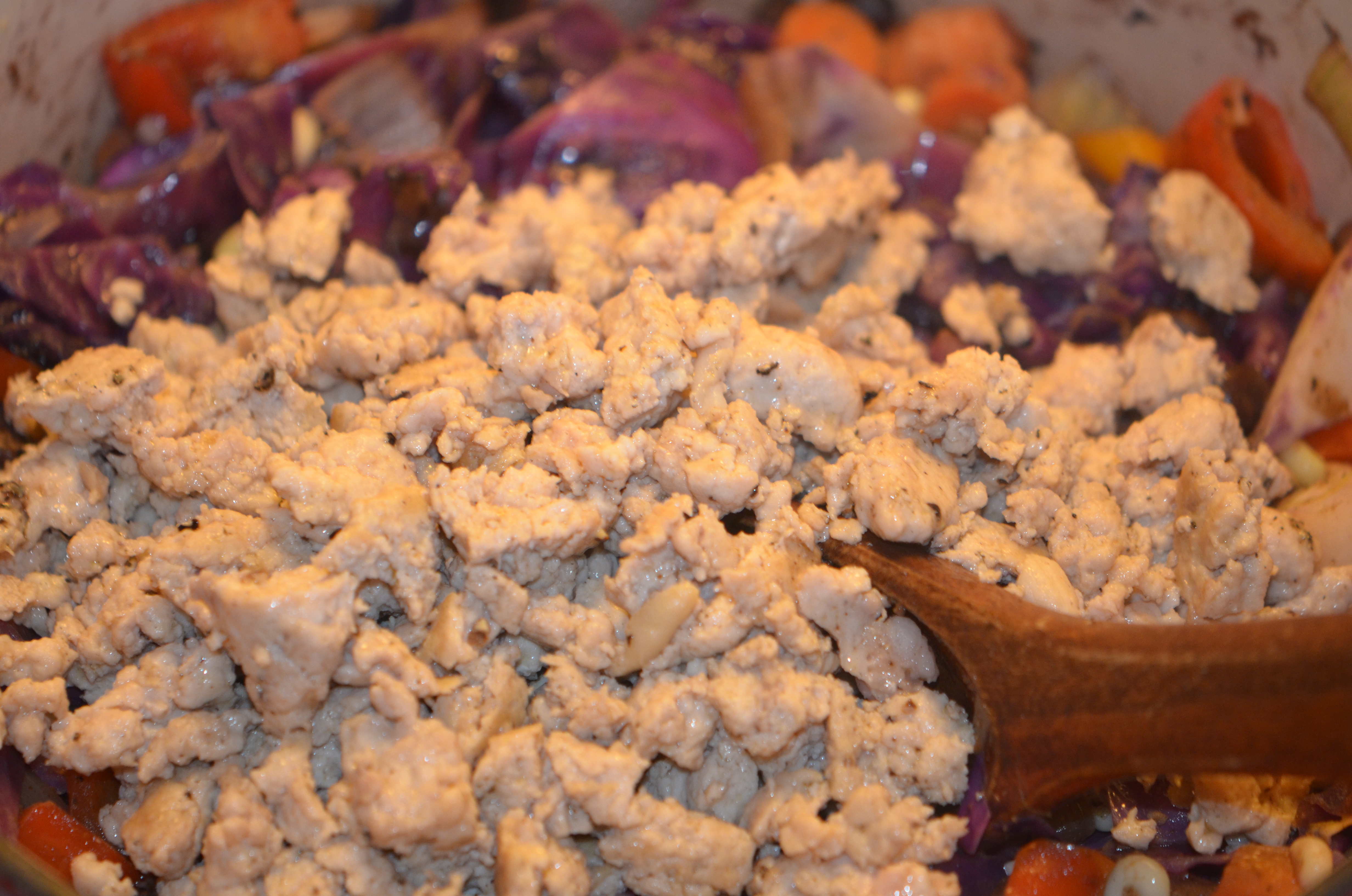 DSC_3475 June 9, 2014 • 4928 × 3264 • Recipe Testing – and Vanilla-Cardamom Challah with Poppy Seeds Combining the chicken and vegetables.