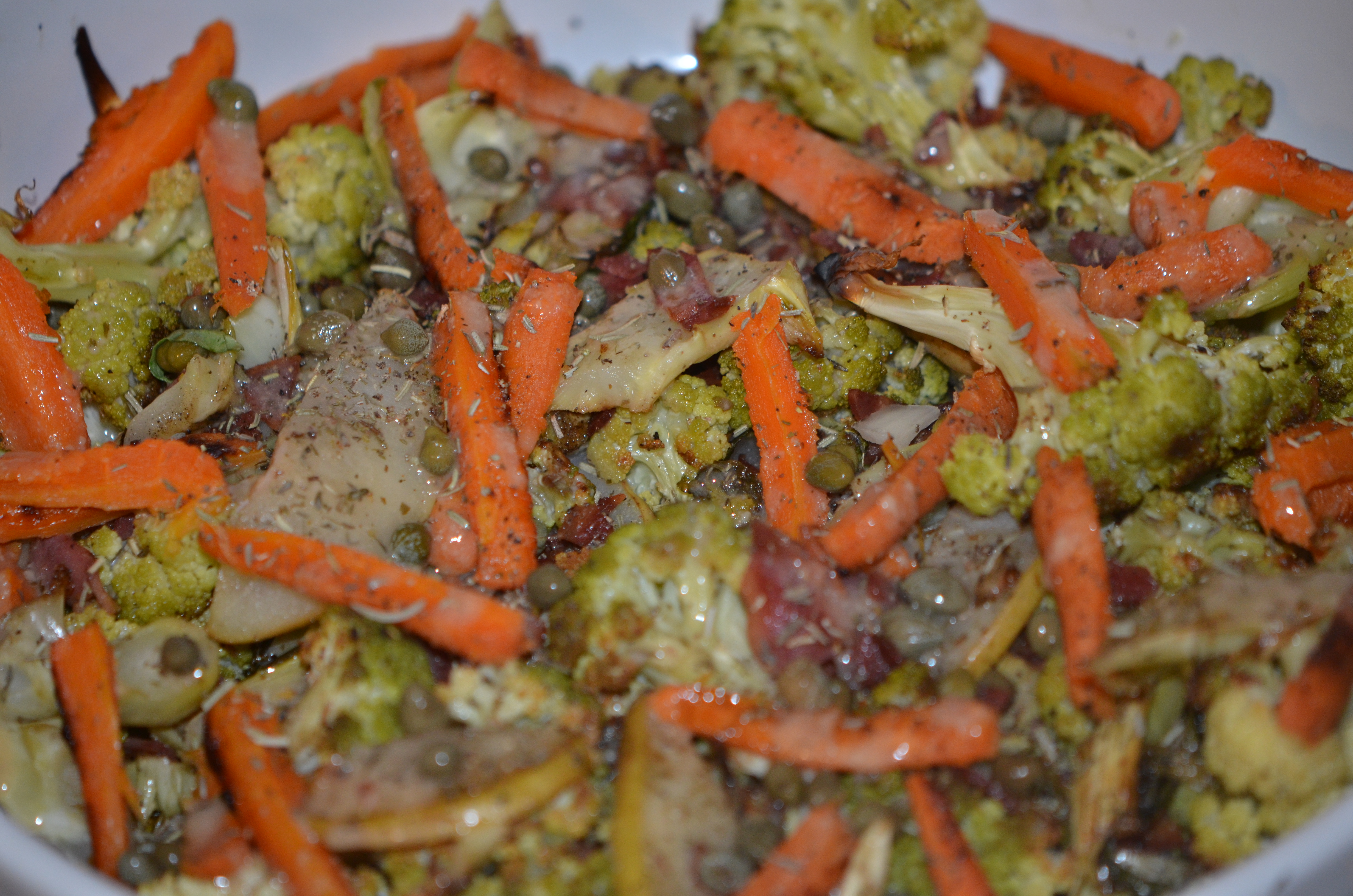 • Roast for about fifteen minutes, or until the carrots, pear and cauliflower are softened but not browned.