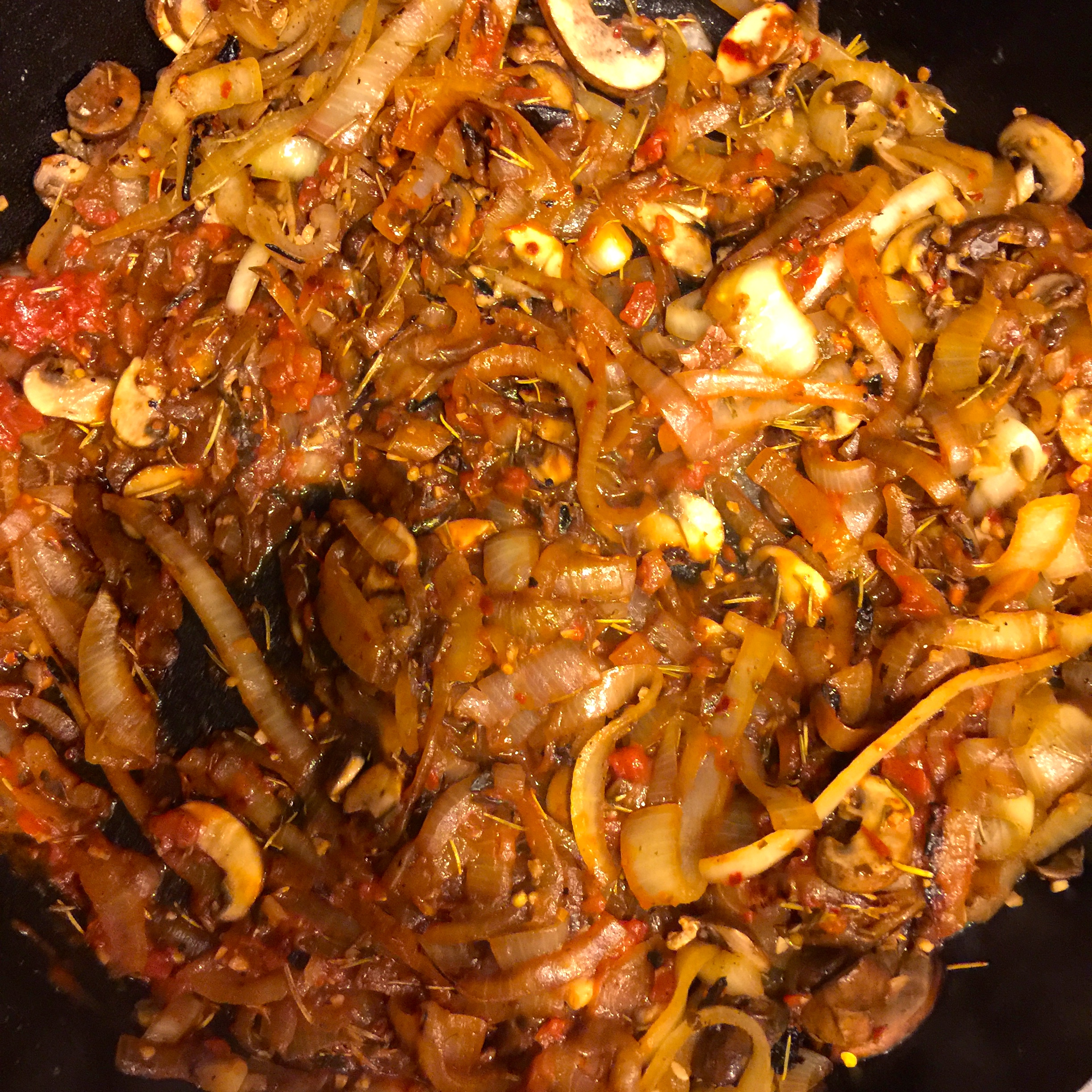 IMG_1853 February 20, 2016 • 2448 × 2448 • Rosemary, Lemon & Caramelized Onion Spaghetti Squash Bake The marinara sauce, rosemary and garlic are added.
