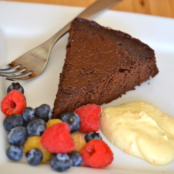 Light Flourless Chocolate Torte with Orange-Almond Mascarpone Cream